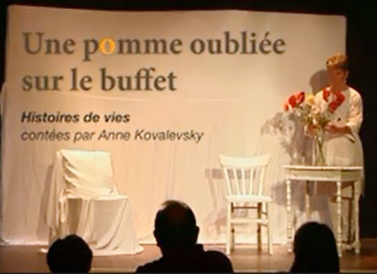 Conteuse depuis 20 ans, Anne a été infirmière. Souvent elle se dit qu’elle n’a pas changé de métier. Elle intervient régulièrement en service de gériatrie pour des contes au pied du lit, ou bien en maison de retraite (également en écoles, bibliothèques, théâtres, musées). Elle propose différents spectacles pour personnes âgées. Un spectacle d'histoires d'amour, histoires de femmes et un spectacle de récits de vie, résultat d'un travail qui a duré 4 ans en service de gériatrie au pied du lit des personnes âgées. Temps d'intervention : Spectacle d’1 heure. Pour les contes au pied du lit, prestation d’une demi-journée (4h) Zone d'intervention : le Rhône et les départements limitrophes Isère, Haute Loire, Drome. Recommandé par l'hôpital des Charpennes à Villeurbanne (69) et la bibliothèque départemental du Bas Rhin (67). Coût prestation : 400€ Contact : anne.kova@free.fr - 06 24 33 50 31 Infos : www.kovalevsky.fr