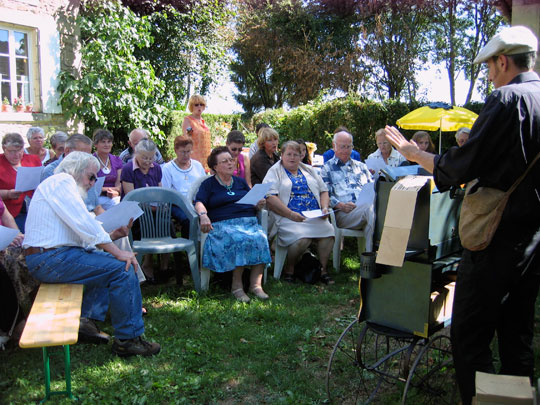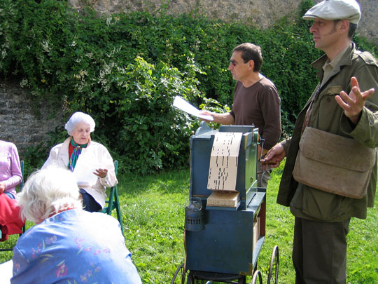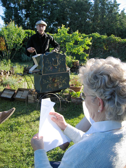 Fabio, chanteur des rues, offre un répertoire de chansons populaires, allant de la fin du 19e siècle aux années 70. Le chanteur transmet sa joie de vivre aux aînés, il tourne la manivelle de son orgue de barbarie et interprète à l'aide de sa voix chaude et puissante les plus grands morceaux de variétés. Le répertoire choisit est adapté au public. Les résidents sont invités à reprendre en chœur Fréhel, Gainsbourg ou encore Brel.