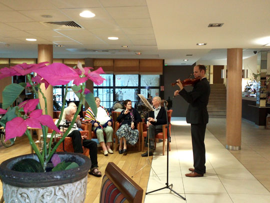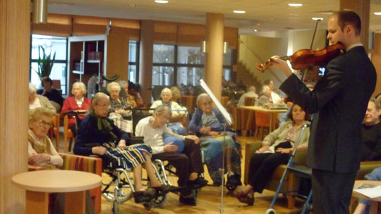 Gabriel Aribaud, violoniste professionnel, propose aux résidents une animation musicale de qualité et conviviale. Au programme de cette prestation, de la musique classique avec La Méditation de Thaïs, Les Valses de Strauss ou encore Le Prélude de Bach. Le musicien interprète également de grands titres, tels que Java bleu, Etoile des neiges, Tino Rossi, La belle de Cadix, Chanteur de mexico, Veuve Joyeuse… Gabriel peut également monter dans les étages pour faire profiter les résidents moins autonomes d'un instant musical personnalisé. Temps d'intervention : environ 1 h 30 Zone d'intervention : départements 06/11/13/34/60/66/75/77/78/91/92/93/94/95 Recommandé par les Ehpad de Tournan-en-Brie (Seine-et-Marne) et Carmableu à Carcassonne (Pyrénées-Orientales) Coût prestation : entre 175 € et 350 € (selon la fréquence des animations et la formule choisie) Contacts : aribaud.gabriel@orange.fr - 06.51.03.99.57