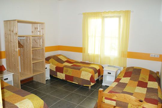 - La Fermette, pour 10 à 12 personnes, strictement voisin du gîte La Grange. Au rez-de-chaussée, il offre 2 chambres (2 lits simples et 1 lit double 160x200cm), 1 salle d’eau avec WC et les pièces de vie. A l’étage, se trouvent 3 chambres indépendantes (2 lits doubles et 3 lits simples ou 7 lits simples) avec 2 salles de bain et 1 WC séparé.