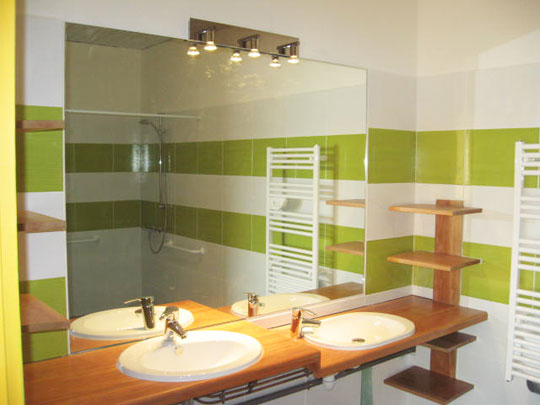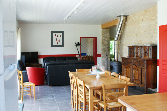 - Le Fournil, pour 12 personnes, avec piscine. Au rez-de-chaussée, 1 chambre PMR avec salle d’eau et wc privatifs (3 lits simples), grande pièce à vivre de 80m², cuisine, salon, télé, poêle à bois, salle d’eau adaptée, wc séparés adaptés. A l’étage, se trouvent 4 chambres (9 lits simples), 2 salles d’eau et 2 wc séparés.