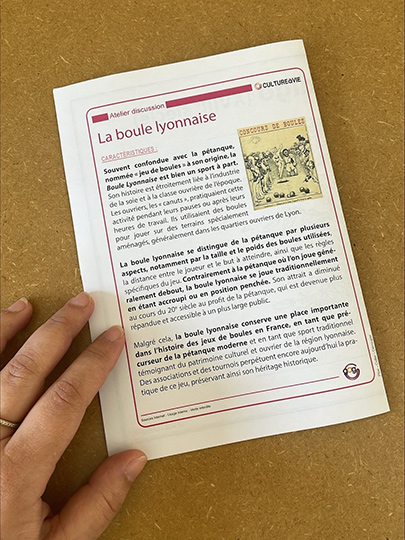 Ce support d’animation pour les personnes âgées se compose de 10 cartes retraçant les origines de la pétanque, les déclinaisons du jeu de boules et les caractéristiques de ce sport. Un petit air provençal pour la saison estivale à partager avec les amateurs/trices de ce jeu.