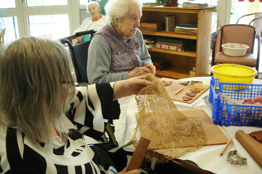 Betty Merchie propose de faire découvrir l'art de la poterie aux résidents. L'intervenante offre deux approches adaptées aux personnes âgées. Pour les personnes autonomes, dépendantes ou atteintes d'Alzheimer, Betty intervient dans l'EHPAD. Lors de cette prestation, la potière vient avec toutes les fournitures nécessaires à l'atelier. Cet atelier permet la création d'objets en terre cuite évoluant suivant la saison, l'atelier stimule la concentration et entraîne l'engouement de tous les résidents. Pour les résidents autonomes, l'artisane propose une visite de son atelier à Sceaux-du-Gâtinais aménagé pour l'occasion, dans lequel un groupe (40 résidents maximum) découvrira les différentes étapes de fabrication de la poterie. En fin de visite, une initiation à la poterie est proposée, suivie d'un goûter. Temps d'intervention : environ 1 heure Zone d'intervention : départements 45 (50 km autour de Sceaux-du-Gâtinais) et 77 (sur devis) Recommandé par les Ehpad de Beaumont du Gâtinais (Seine-et-Marne) et de Puiseaux (Loiret) Coût visite : 5€ par personne et 10 € si prise d'un goûter en fin de séance. Coût présentation : 130 € (au delà de 30 km autour de Sceaux en Gâtinais, prévoir frais de déplacement) Contacts : mail : betty@bouledeterre.com - téléphone : 06.62.05.23.65