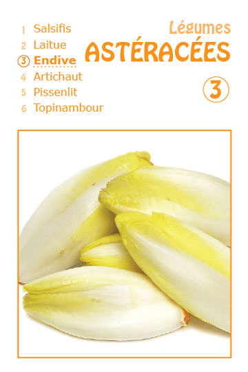 Construit sur la règle du jeu de 7 familles, ce jeu de cartes a pour thème les familles de légumes. Les familles de légumes Apiacées, Astéracées, Brassicacées, Liliacées, Poacées, Solanacées et Fabacées ont ainsi 6 cartes représentant 6 légumes de leur famille qu’il faut regrouper dans son jeu. En amont du jeu, vous pouvez proposer une exposition consacrée à ces familles de légumes avec leur définition et leurs spécificités en imprimant le fichier « exposition ».