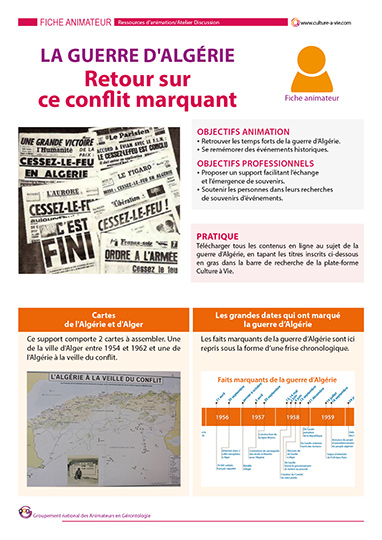 Mars 2021 marque le 59e anniversaire de la fin de la guerre d’Algérie. Retrouvez un vaste choix de contenus (cartes de l’Algérie, cartes à thème, témoignages, diaporama…) autour du conflit pour revenir avec les résidents sur ce fait historique. Tous les contenus en lien avec ce thème sont à retrouver dans le THEME Fêtes calendaires - RUBRIQUE : Guerre d'Algérie