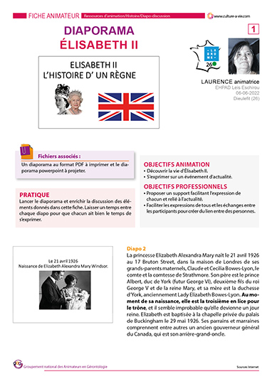 Pour compléter le diaporama proposé par Nelly, Laurence a rassemblé des informations complémentaires sur la vie de la Reine d’Angleterre sous la forme d’un diaporama accompagné de sa fiche animateur. Vous pouvez compléter cette animation avec les fiches consacrées aux Reines de France et celles sur les monarchies d’Europe (à retrouver en tapant « Reines » et « Monarchies » dans l’espace recherche. A retrouver également : le diaporama sons sur l'Angleterre.