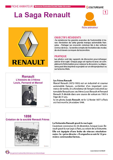 L’histoire de la marque depuis sa création jusqu’à nos jours avec les voitures qui ont fait partie de la vie des résidents. De la 4cv à la Laguna en passant par la Dauphine ou la R12, 40 diapositives permettront à chacun de retrouver un peu de son passé et de formuler ses souvenirs liés à l’automobile.