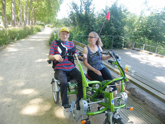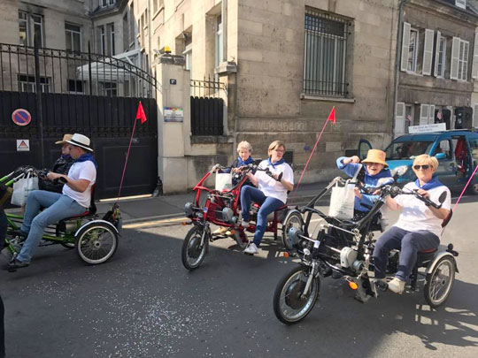 Claire relate ici comment l’achat de tricycles électriques au sein de l’établissement a permis de proposer un type de sortie originale et personnalisée. Accompagné d’un bénévole, d’un membre de sa famille ou d’un membre du personnel le résident peut profiter d’un moment privilégié pour faire une balade ou se rendre à un rendez-vous. Les discussions en route sont toujours très profitables pour en savoir un peu plus sur la vie de chaque personne.