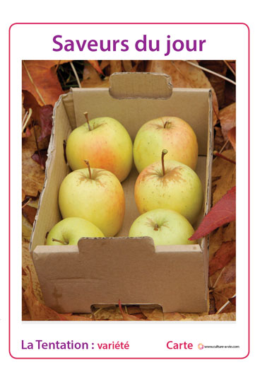 Dix cartes « pommes » vous permettront de faire redécouvrir ce fruit, de mieux connaître sa provenance et ses différentes variétés. Un diaporama reprend une photo de chaque variété pour aider à la discussion autour de cet aliment très présent dans la cuisine et l’alimentation. Diaporama compatible borne Mélo. Pensez à « dézipper » le diaporama avant de le projeter