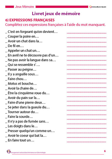 Ce support d’animation destiné aux personnes âgées regroupe 10 jeux permettant de se creuser les méninges. Les questions portent essentiellement sur des exercices en lien avec la langue française. Ici, pas de calculs. Le niveau est assez facile, à vous de proposer ce support en fonction des capacités de votre public.