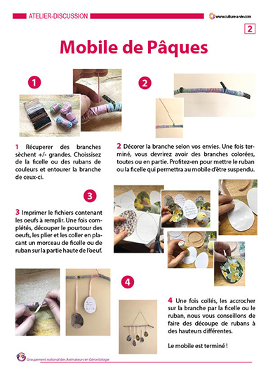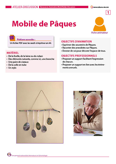 A l’approche de Pâques, ce contenu présenté sous forme de mobile, vient questionner les souvenirs des résidents en lien avec cette période. Le mobile permettra de décorer les chambres et/ou les espaces communs pour les festivités. Une fiche Animateur explique les étapes du contenu.