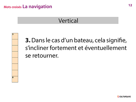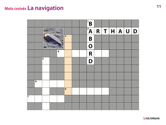 Ce contenu propose de deviner 8 termes liés à la navigation. Conçu sous forme d’un diaporama à projeter pour un usage collectif, ce jeu de mots croisés est divisé en différentes étapes visuelles afin de ne mettre personne en échec. Ce contenu fait écho à la légendaire course de « La route du Rhum » qui relie Saint Malo à Pointe-à-Pitre.