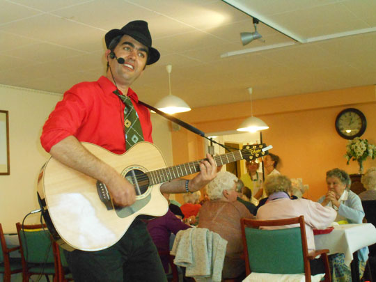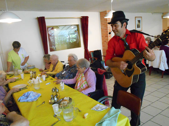 Après avoir pris le temps de rencontrer le public, Nicolas Limare entonne quelques morceaux pour capter l'attention de l'assemblée. Le silence laisse place à l'émotion, aux souvenirs et au partage, le public guide le répertoire musical selon ses envies. Pour que la fête s'installe dans chaque cœur, Nicolas chante pour les résidents, le personnel et va voir les personnes immobilisées dans leur chambre ou désorientées. Dans le cas où un membre du public voudrait chanter la musique qui lui trotte dans la tête, Nicolas se fait un plaisir de lui fournir un micro et de l'accompagner. Le chanteur offre un spectacle fixe ou mobile, en fonction du nombre de personne dans la salle. Temps d'intervention : environ 1 heure 30 Zone d'intervention : partie nord de la France Recommandé par les Ehpad de Maromme et du Havre (Seine-Maritime) Coût présentation : 250 € (hors frais de déplacement) Contacts : nico.limare@wanadoo.fr - 06.03.60.69.37