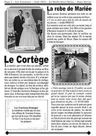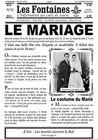 Guillaume partage ici un numéro du journal de son établissement « Les Fontaines » situé dans les Deux-Sèvres. La rédaction de ce journal est faite à partir d'un groupe de parole appelé "Discussion à thème." Ici le thème est LE MARIAGE. Ce partage vous invite à faire de même avec les journaux de votre structure si vous pensez qu’ils peuvent intéresser les résidents d’autres établissements. Guillaume a testé ces échanges en mettant les journaux d’autres structures à disposition dans les espaces collectifs et ils sont particulièrement appréciés des résidents (c'est normal, ils sont écrits par les aînés et parlent de sujets qui les intéressent). Si le concept vous séduit, vous pouvez télécharger celui de Guillaume et envoyer les vôtres à : carine.jondeau@culture-a-vie.com afin qu’ils soient publiés sur CULTUREàVIE.