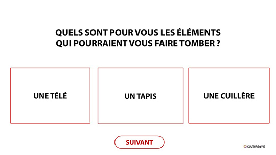 Ce diaporama a été créé par des élèves infirmières en stages dans l’Ehpad d’Annabel qui a souhaité le partager dans le cadre d’un atelier prévention. Ce quiz, composé de 25 diapositives, apportera des connaissances supplémentaires ou complémentaires pour rappeler les mesures parfois simples qui peuvent éviter les chutes à domicile ou en structure.