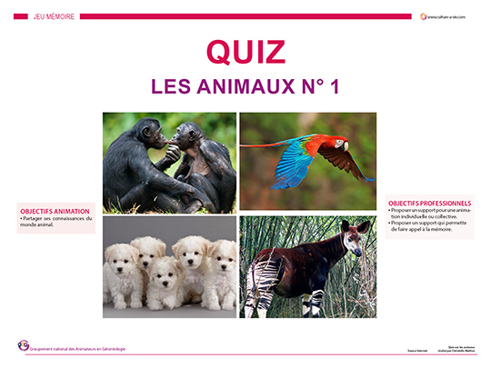 Christelle propose un diaporama quiz pour découvrir certaines particularités, habitudes d’espèces animales. 20 questions sont posées suivies de leurs réponses. Ce quiz fait appel à la mémoire et est le premier d’une série de 2, autour du thème animal.