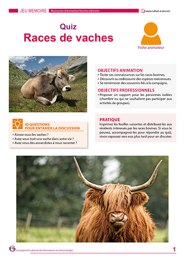 Ce quiz aborde les races bovines. 22 questions auxquelles les résidents répondront à l’aide de trois réponses possibles à chaque fois … Les solutions sont données en fin de quiz.
