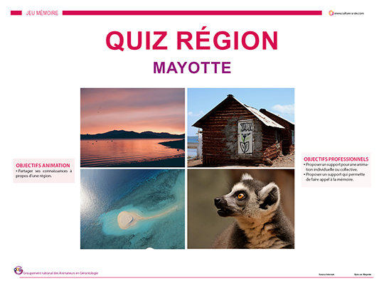 Ludovic propose un diaporama quiz pour découvrir des lieux, des appellations, des personnes qui représentent Mayotte. Une vingtaine de questions sont suivies de leurs réponses. Ce quiz fait appel à la mémoire, il permettra aux personnes originaires de la région d’évoquer leurs souvenirs.