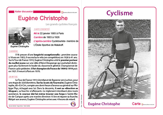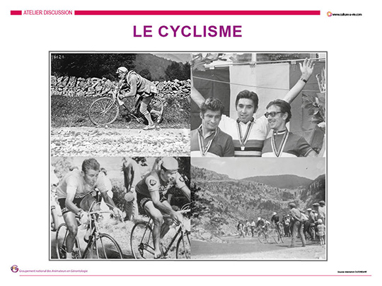 Un diaporama reprenant les grands moments du cyclisme de la naissance du tour aux cols mythiques en passant par les grands coureurs qui ont marqué ce sport. Des cartes détaillant l’histoire du cyclisme viendront compléter vos ateliers discussions que vous pourrez mettre en avant à l’aide de l’affiche et des invitations jointes.