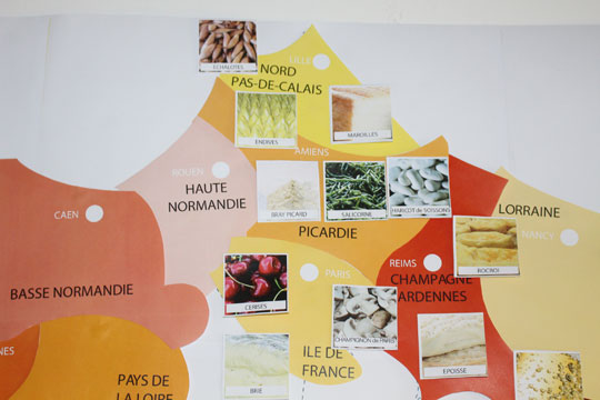 Une carte de France à assembler au fur et à mesure de différents ateliers discussion permettant de reconstituer les régions et les principales spécialités culinaires associées. Un thème tout à fait approprié à la semaine du goût qui se déroule chaque année en octobre. Un diaporama compatible avec la borne Mélo qui ajoute un quiz sur les habitudes culinaires de chaque région de France.