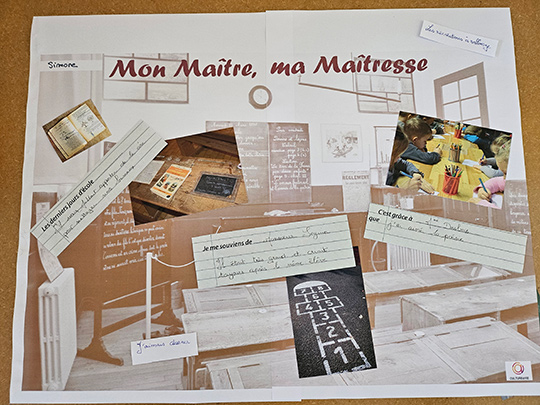 L’année scolaire va bientôt se terminer. Elle sera comme à chaque fois synonyme de joie pour les uns et de pleurs pour les autres. Quitter sa maîtresse est un crève-cœur pour beaucoup d’enfants. En était-il de même pour les aînés ? Cette animation s’appuie sur des images et un support à composer facilitant les échanges, les anecdotes et les souvenirs. Chaque personne dispose d’un support de fond vierge et des photos sont proposées au centre de la table. Chacun leur tour les résidents vont choisir une image en lien avec le thème proposé et justifier de leur choix par un vécu (Je me souviens de Mme …. qui nous félicitait en nous donnant des images; C’est grâce à Monsieur que j’ai aimé le français ; Les derniers jours d’école il fallait nettoyer les bureaux…). Au fur et à mesure des tours de table, le « Merci Maitresse » de chacun va prendre forme. Les résidents sont ensuite libres de repartir avec et de le partager avec leur entourage ou de le laisser pour créer une exposition.
