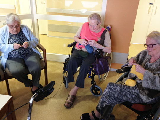 Comme dans de nombreux établissements, l’établissement où travaille Nathalie dispose d’un atelier tricot toujours bien fréquenté. En cherchant un but aux créations des dames, Nathalie s’est appuyée sur une connaissance dans le domaine de l’humanitaire pour créer un lien entre la résidence et un village Népalais. C’est ainsi que les carrés de laine se sont transformés en écharpes et autres bonnets pour venir combler des enfants défavorisés du bout du monde.