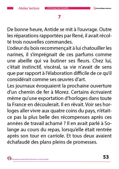 Parti du constat que certains aînés passionnés de lecture n’avaient plus les capacités de lire un ouvrage entier si celui était trop conséquent, Guillaume a mis au point une méthode pour condenser les livres. Des « mini-livres » qu’il propose dans un premier temps en atelier lecture collective avant de les imprimer en très gros caractères pour une mise à disposition à la bibliothèque. Il propose ici un condensé d’un roman mêlant amour paternel tout en mêlant l’amour d’un métier, l’horlogerie. Ce livre comporte 67 pages A4 en caractères de taille 26.