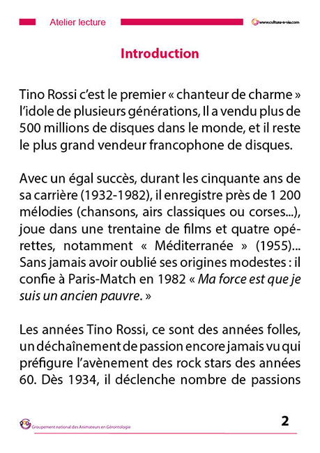 Il propose ici un condensé sur la vie de Tino Rossi. Ce livre comporte 63 pages A4 repris en caractères de taille 26.